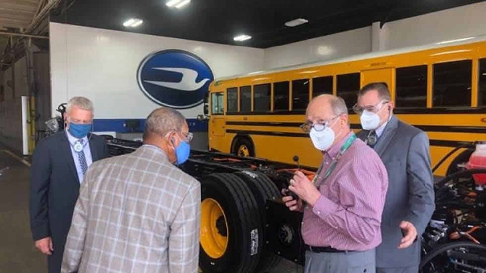 Sanford D. Bishop, the U.S. Rep. for Georgia’s 2nd congressional district, visits the OEM’s manufacturing facility to discuss electric school bus technology, pending infrastructure bills, and the region's growing workforce.