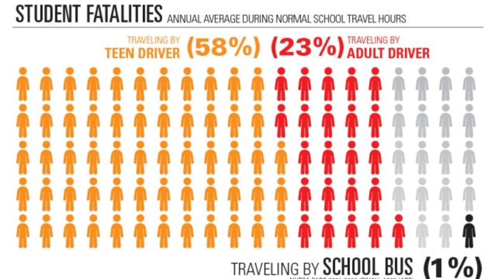 Read More →There were 1,236 fatal school transportation-related crashes from 2001 to 2010, the National Highway Traffic Safety Administration reports. That’s 0.34% of the total 363,839 fatal motor vehicle traffic crashes during that time period.