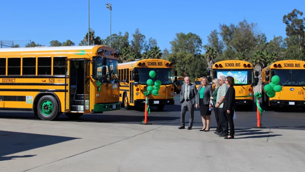 The Blue Bird vehicles are the first electric buses for Escondido Union High School District.
