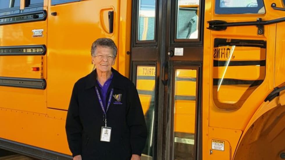 Iowa’s Charlene Beaderstadt drove school buses for 30 years before retiring. Four months later, she was back on a yellow bus, this time attending to special-needs students.