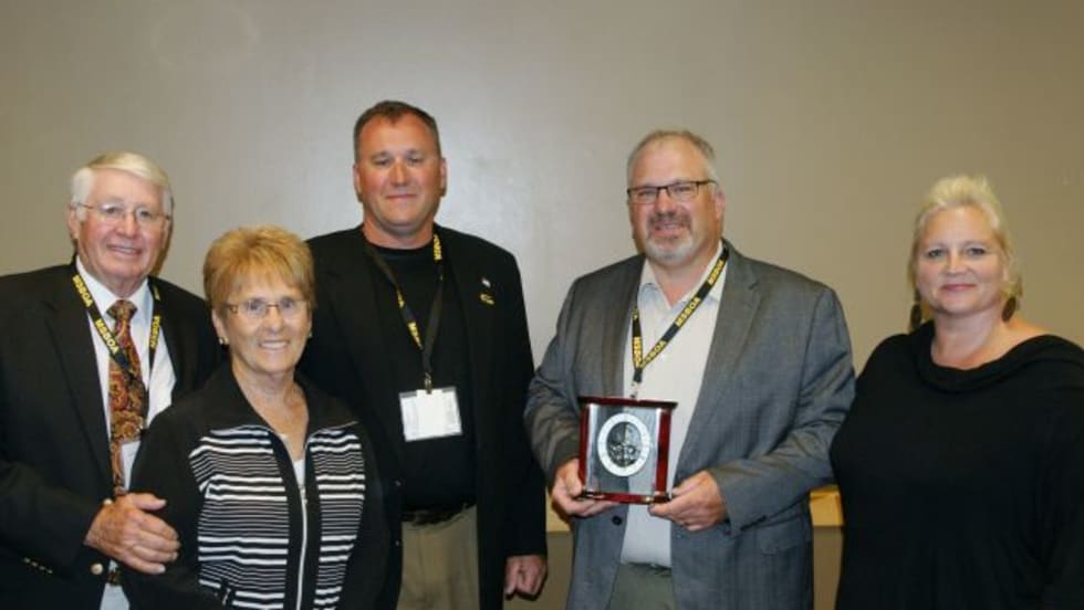 The Minnesota School Bus Operators Association presents awards to six school bus drivers and two veteran contractors for their dedication to the safety of students.