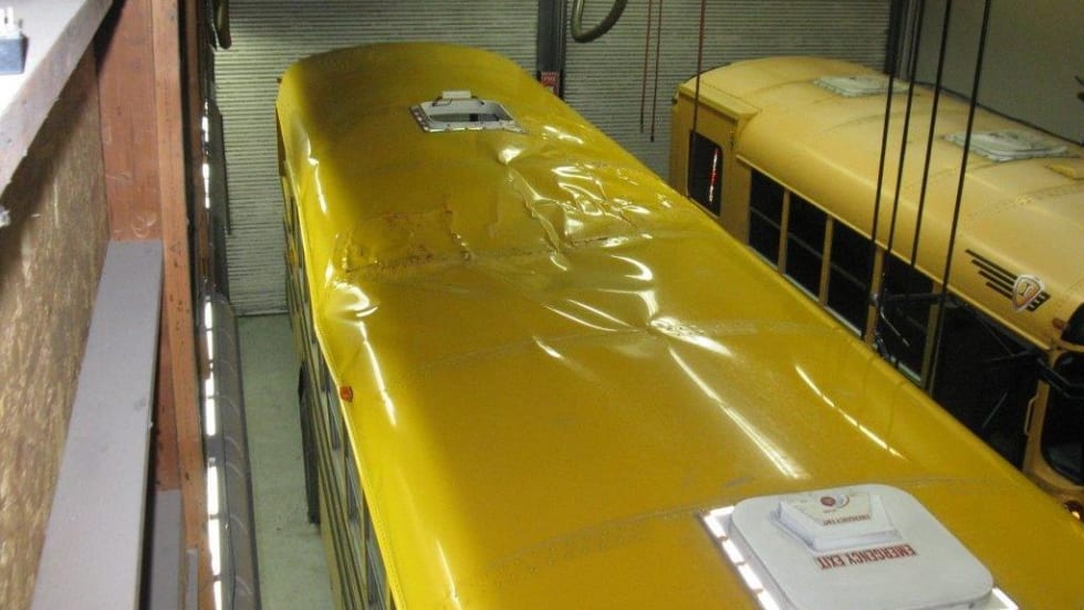 Ray Johnson, a bus driver for Longview (Wash.) School District #122, was driving on a rural road with four students on board when strong winds knocked a tree on top of the bus. He was able to call for help in time and students were safely transferred to another bus.