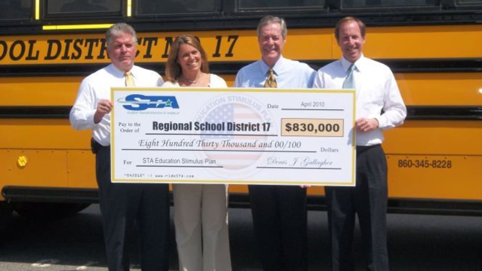 Regional School District 17 has taken advantage of Student Transportation of America’s stimulus program. The district will receive an initial payment of $830,000 for the purchase of its fleet, which district officials say will free up funding for school facility improvements. STA will also offer positions to all current RSD 17 bus drivers.