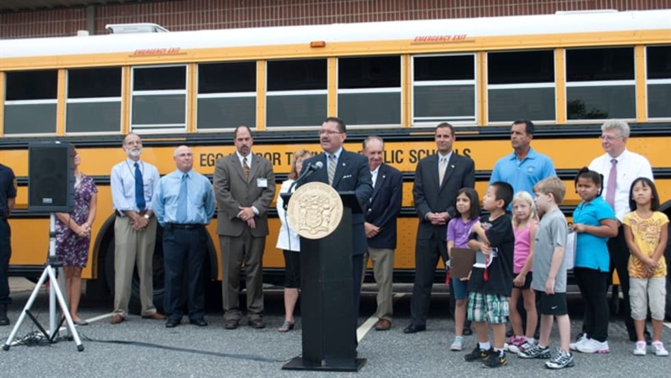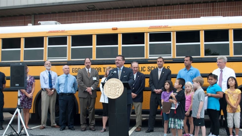 The New Jersey Motor Vehicle Commission holds a safety event at the Egg Harbor Township Board of Education school bus maintenance garage to kick off its biannual school bus inspections. Director of Transportation Warren Fipp discusses the event, and the importance of the inspection program, with SBF.