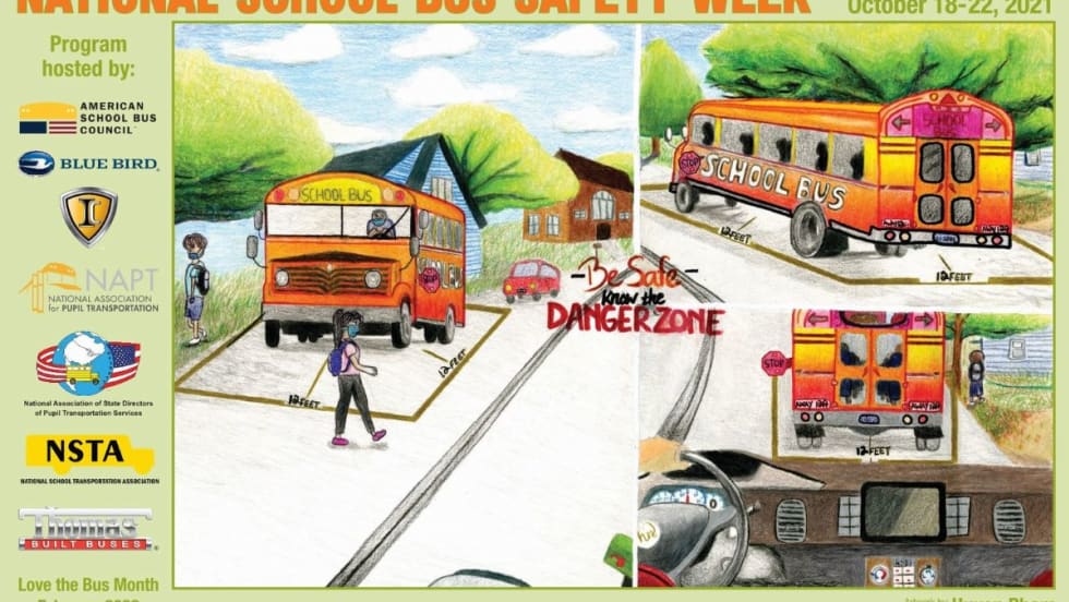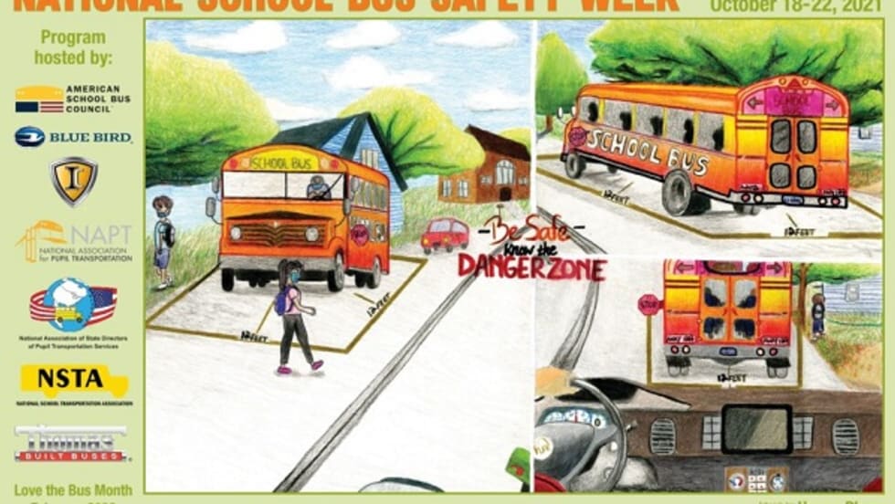 Artwork from Huyen Pham, a student at Northbrook Middle School in Atlanta, Georgia, was chosen by the American School Bus Council to promote the “Be Safe – Know the Danger Zone” contest theme.