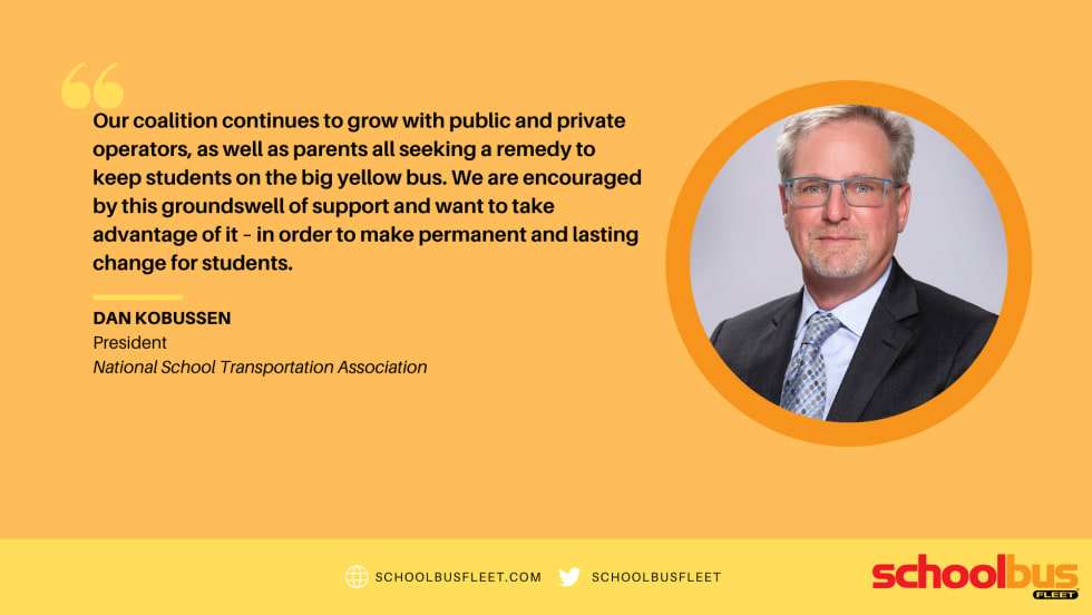 Read More →Our coalition continues to grow with public and private operators, as well as parents all seeking a remedy to keep students on the big yellow bus. We are encouraged by this groundswell of support and want to take advantage of it – in order to make permanent and lasting change for students.