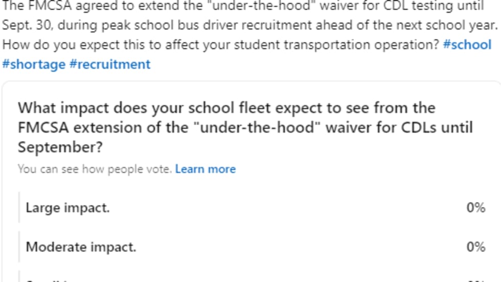 How does the FMCSA's decision to extend the "under-the-hood" waiver for commercial driver's license testing until Sept. 30 stand to affect your student transportation operation?