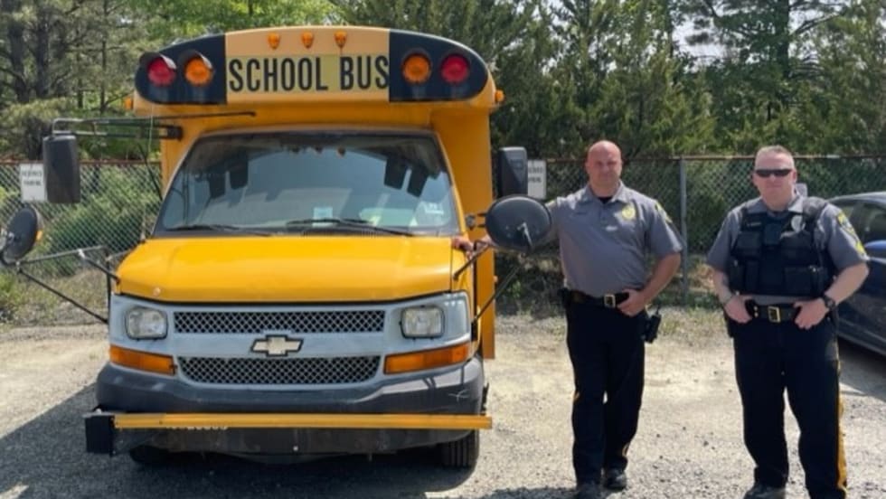 The student transportation provider gave a mini school bus to the Little Egg Harbor Police Junior Recruits.