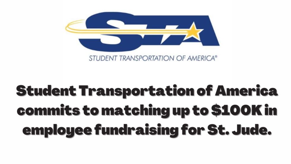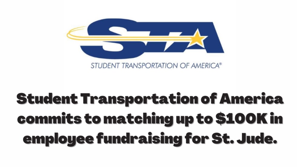 STA, provider of student transportation and fleet services, plans to match employee fundraising with a donation match of up to $100,000 to St. Jude Children's Research Hospital.