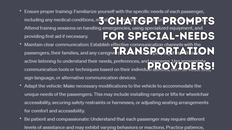 Can chatbots like ChatGPT give an AI boost to enhance special-needs transportation by helping to create inclusive environments and supporting sensory sensitivities? What can this resource do for drivers and aides in your operation?