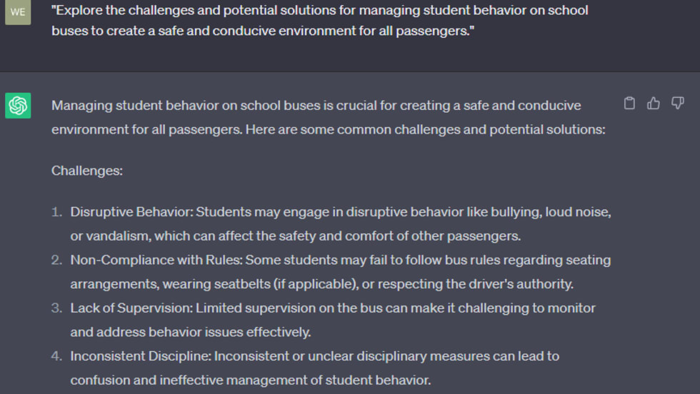 These articles helped readers take those early steps into using chatbots like ChatGPT to assist in the management of school transportation operations, from maintenance planning to collaborating with school board officials.