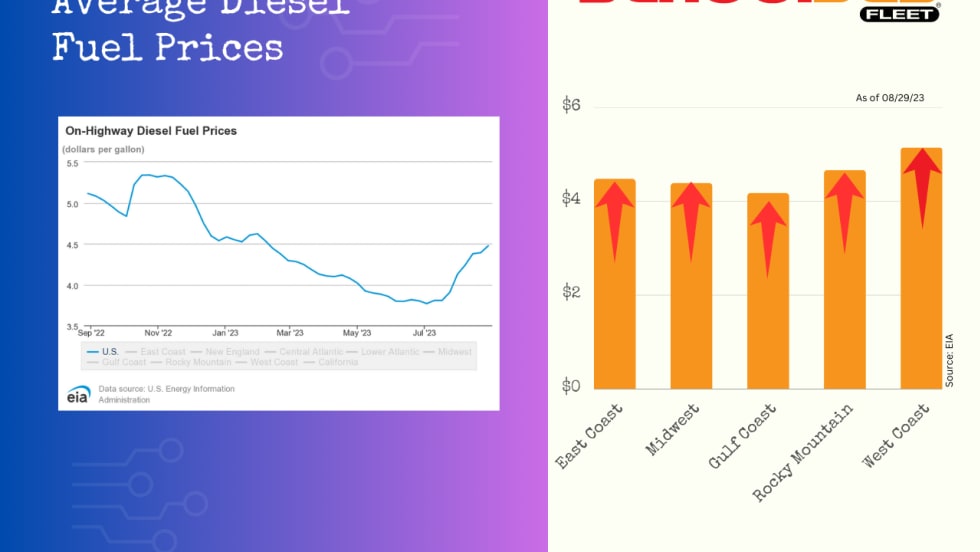 Average prices for diesel and gasoline across the United States jumped after a stagnant week, but still remained below highs of the same period in 2022.