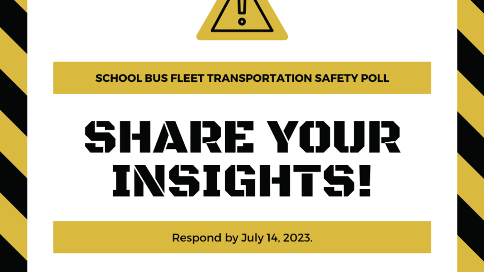Until July 14, School Bus Fleet is accepting responses to this poll about school transportation safety. We look forward to hearing from you and benefiting from your insights!