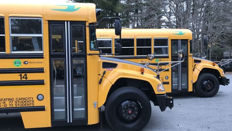 Brunswick School Department secures $156,240 in grants from the state’s Volkswagen settlement funds to purchase the Blue Bird Vision propane buses.