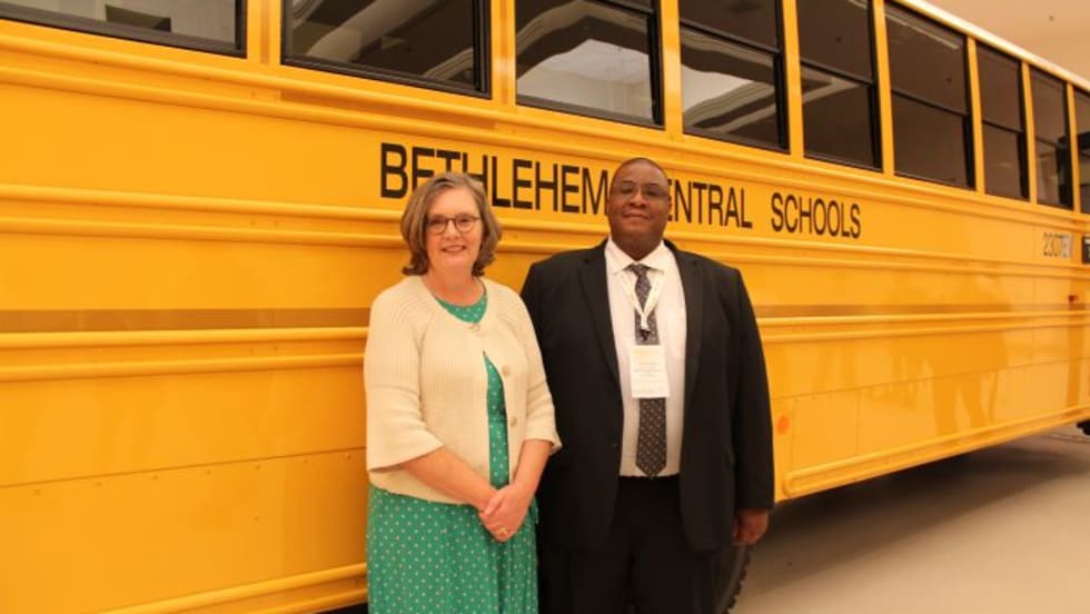 Bethlehem Central School District showed one of its five new electric school buses at the New York State Association for Pupil Transportation's Summer Conference.