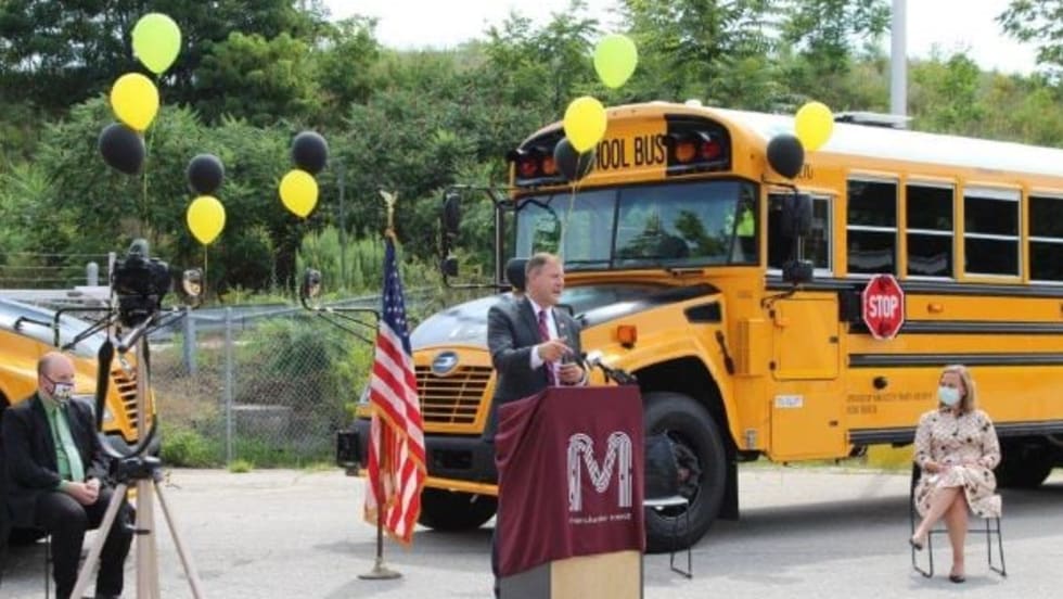The City of Manchester adds the Blue Bird Propane Vision buses to its fleet to serve Manchester School District. Nine of the buses are now transporting some students to schools starting in-person learning.