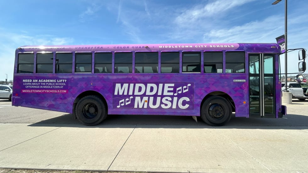 Middletown City Schools is expected to use the donated Blue Bird bus to take students and staff to music competitions and community events.