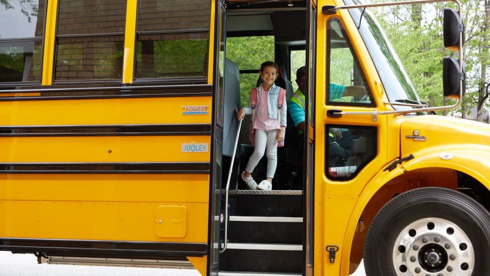 Falls Church City Public Schools' new Thomas Built Jouley buses each seat up to 77 students and can travel approximately 135 miles on a three-hour charge.