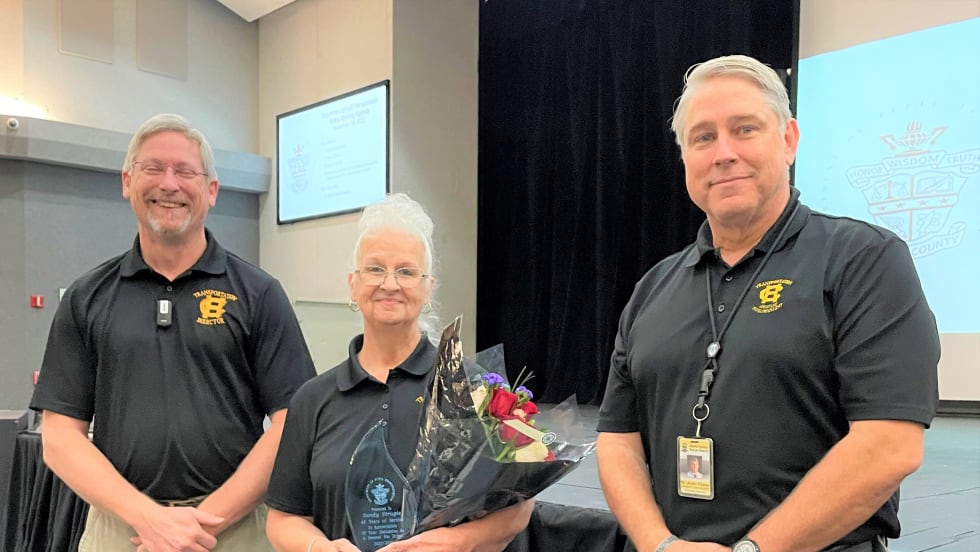 Harris County School District in Georgia recognized Sandy Sturges for her 45 years (so far) driving a school bus for students in Hamilton.