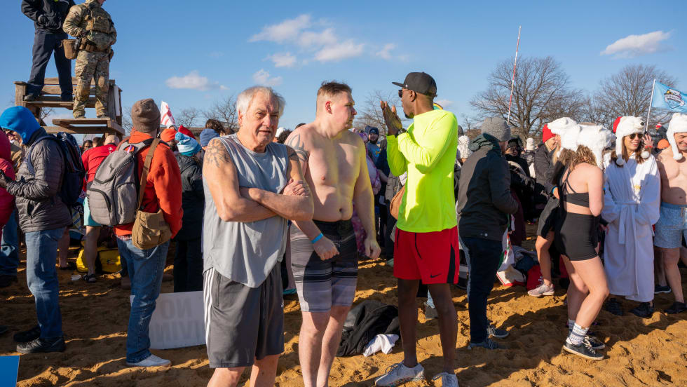 Employees of the heavy-duty vehicle lift company gathered to endure chilly temperatures and jump into Chesapeake Bay in support of Maryland's Special Olympics.