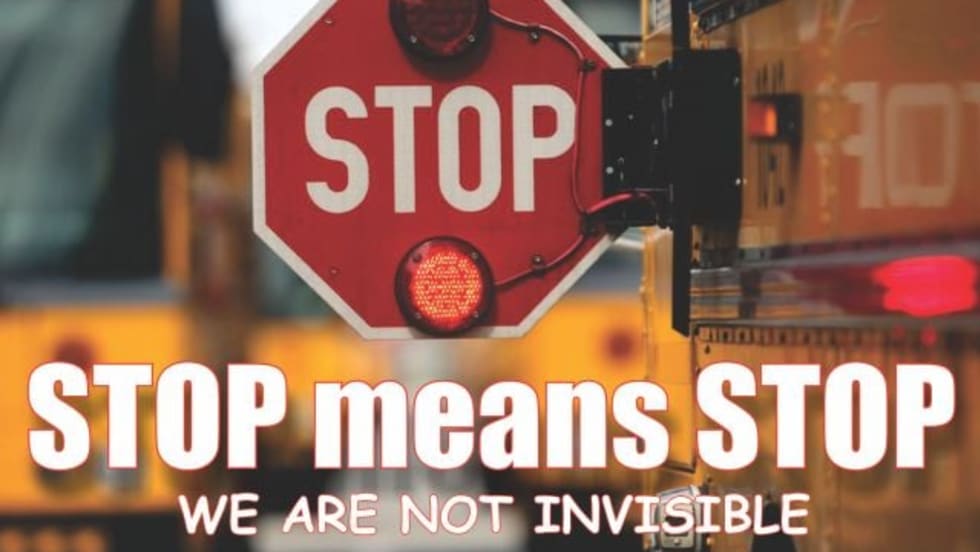 Invited to address truck drivers and other staff at Intermountain Gas Co., an Idaho student transportation expert explains the importance of stopping for school buses.