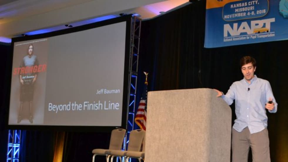 Jeff Bauman tells NAPT Summit attendees about how he lost both legs in the 2013 bombing but was able to give investigators a description of the suspect he had seen.