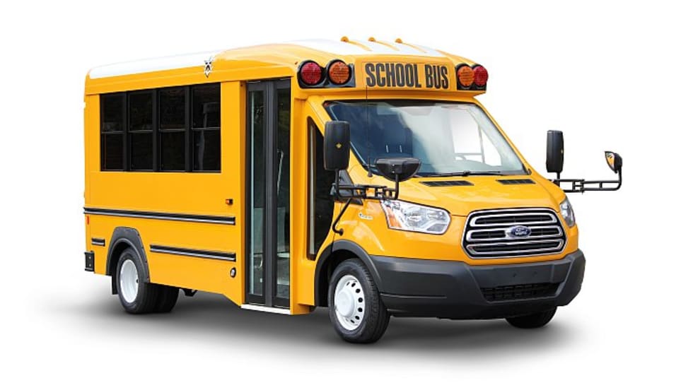 The Trans Star is a 20-passenger, dual rear-wheel bus that combines signature aerodynamics with the Ford Transit platform.