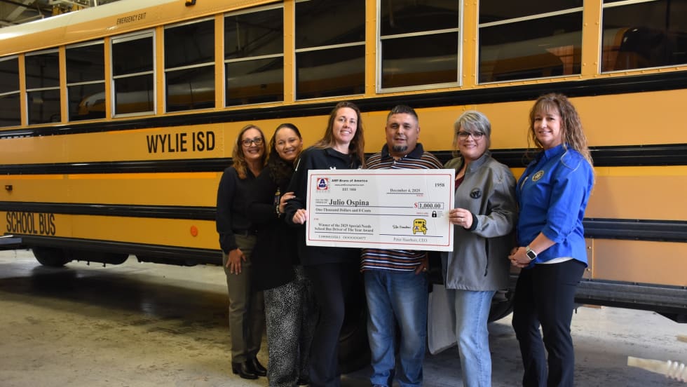 Julio Ospina, a SPED driver and safety trainer at Wylie ISD in Texas, was named the national winner in AMF's annual driver award series.