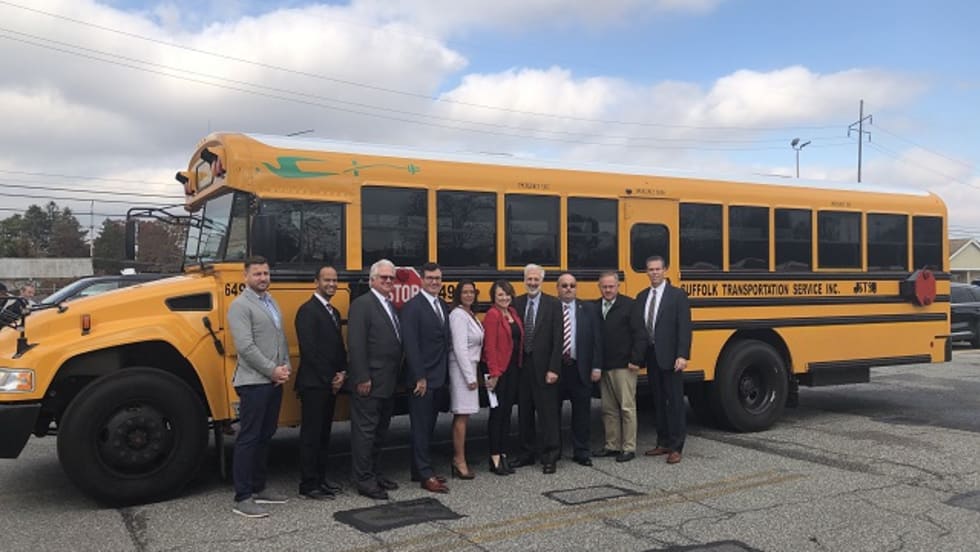 The new buses for Suffolk Transportation and Bay Shore Union Free School District are part of the first production line series of electric models from Blue Bird.