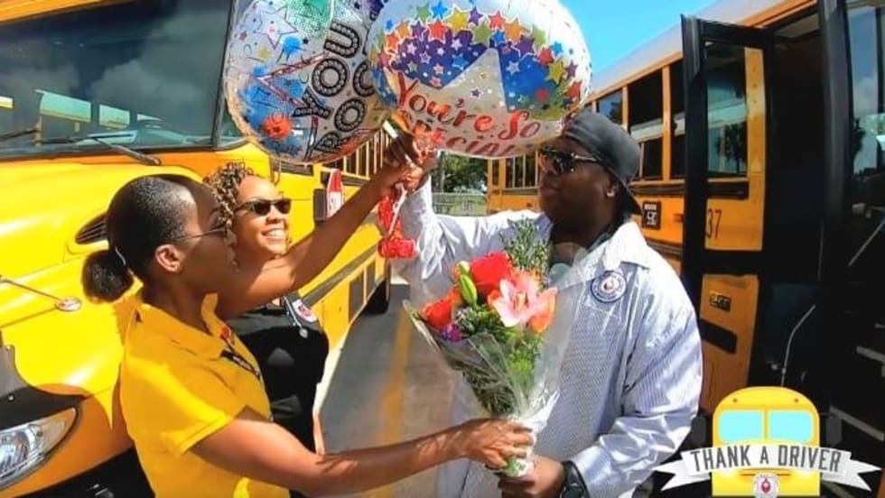 The School District of Palm Beach County (Fla.) honors Myron White, the district's longest-standing bus driver of more than 36 years, during its "Thank a Driver" week.