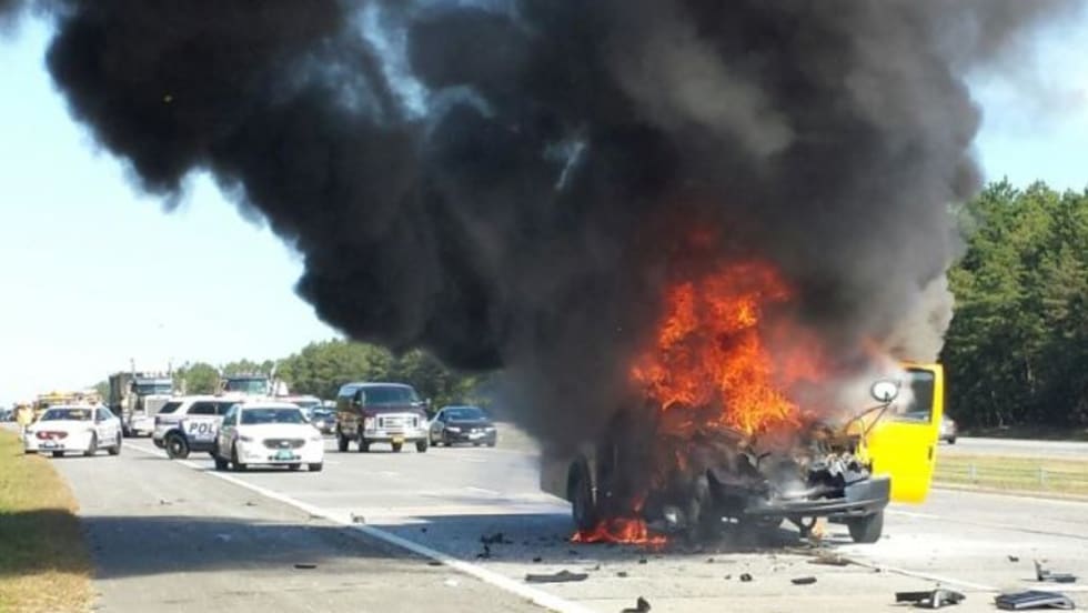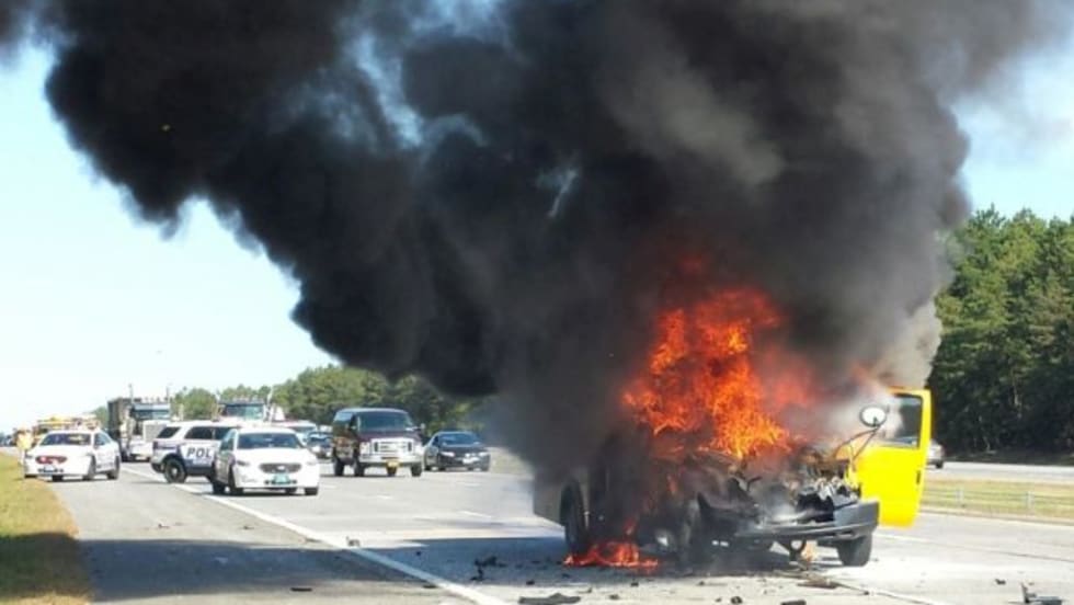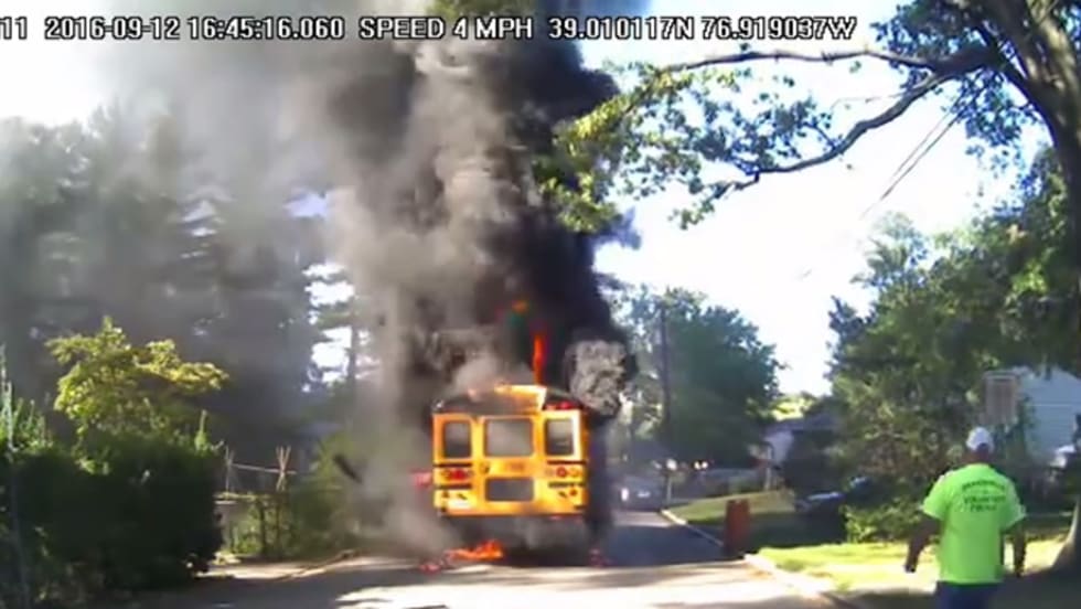 Maryland bus driver Renita Smith is hailed for getting her elementary school passengers to safety before the bus becomes fully engulfed.