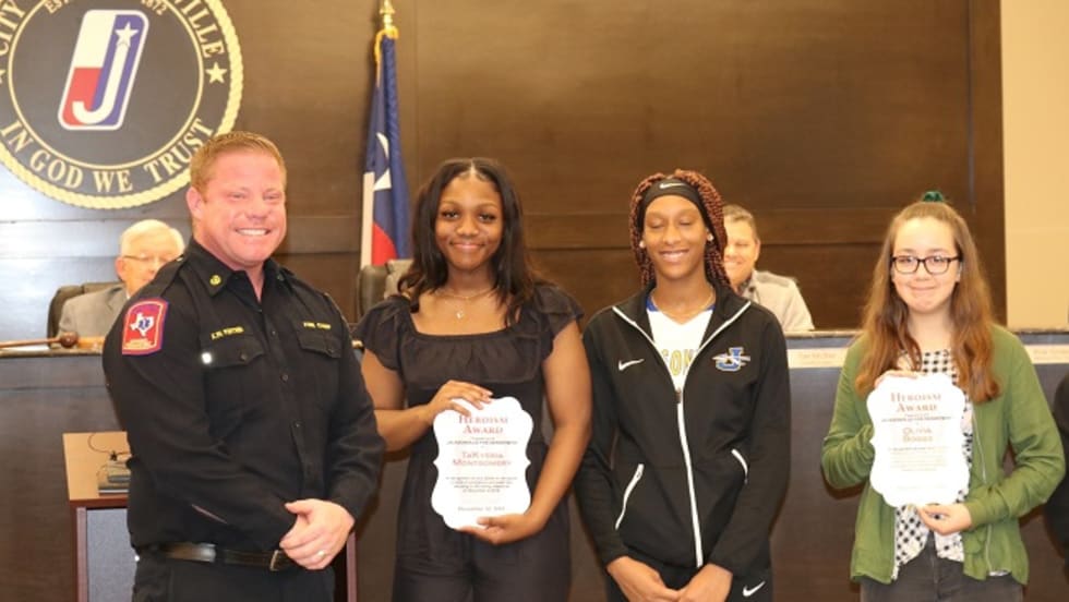 Olivia Boggs of Texas is honored for helping keep students calm and safe after their school bus driver experienced a medical emergency that caused the bus to crash.