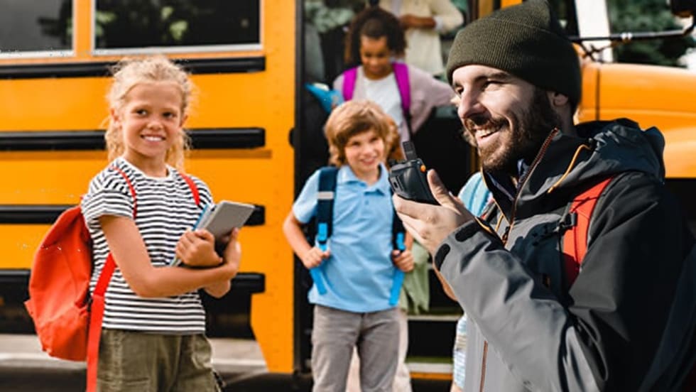 School-Radio can reach virtually anywhere service is needed, utilizing cellular infrastructure. It comes at a fixed budget point, which includes the device, service and maintenance cost.
